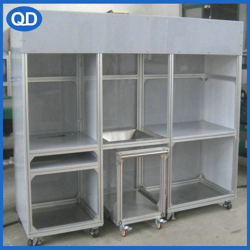 用材:支架采用國標電泳/歐標氧化 工業(yè)鋁型材制作,封板可以采用烤漆鐵板/不銹鋼板/有機玻璃/PVC板等制作,配上同系列鋁型材相關配件安裝。